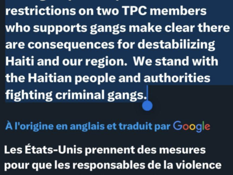 Taking steps to impose visa restrictions on two TPC members who supports gangs make clear there are consequences for destabilizing Haiti and our region. We…