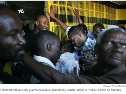 By DAMIEN CAVE Published: January 26, 2010 PORT-AU-PRINCE, Haiti — Thousands of Haitians lined up at money transfer offices here on Tuesday, crowding windows and…