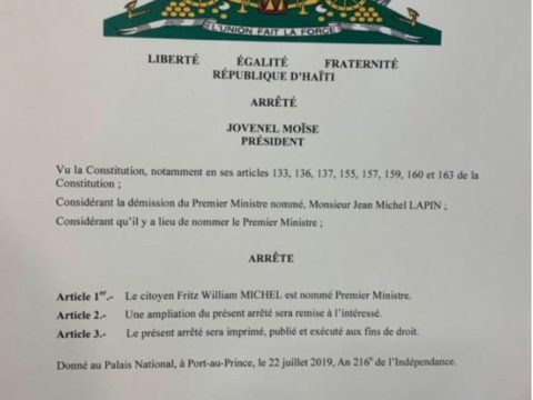 URGENT : Fritz William Michel est nommé Premier Ministre par le Président de la République Pour faire face aux urgences de l’heure,et suite à la…