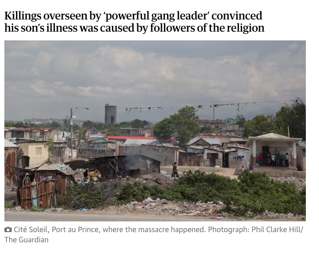 About 200 people were killed in violence in Haiti’s capital over the weekend, many in a massacre in which a gang boss reportedly targeted Vodou practitioners.