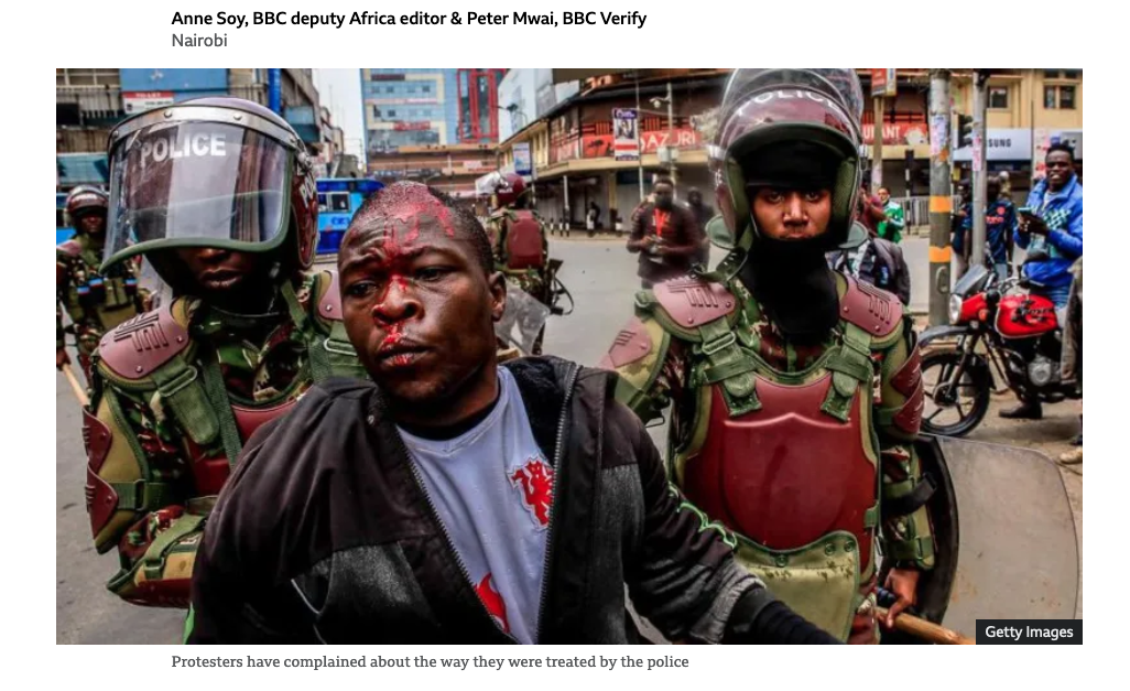 The BBC has verified a video filmed around the same time and likely the same place that Mr Masai was killed, showing what appears to be a plain-clothes police officer shooting at a crowd of protesters who were fleeing along a street.