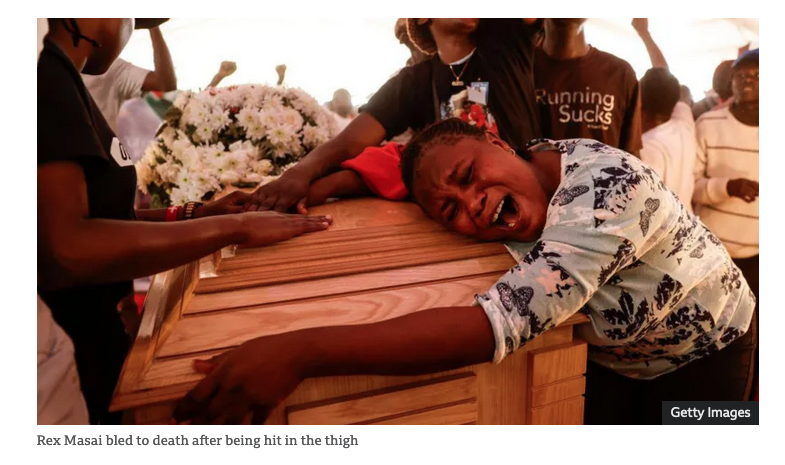 “When I got to [where he died], I asked the medics to uncover my son’s body,” his mother, Gillian Munyao, told the BBC a day after the incident. She saw where the bullet had entered his leg.