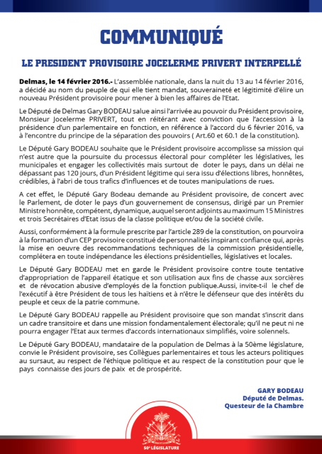 Posted in DAILY REPORTS-Direct From Haiti, Elections Communique Du Presse ` February 15, 2016 Author: `