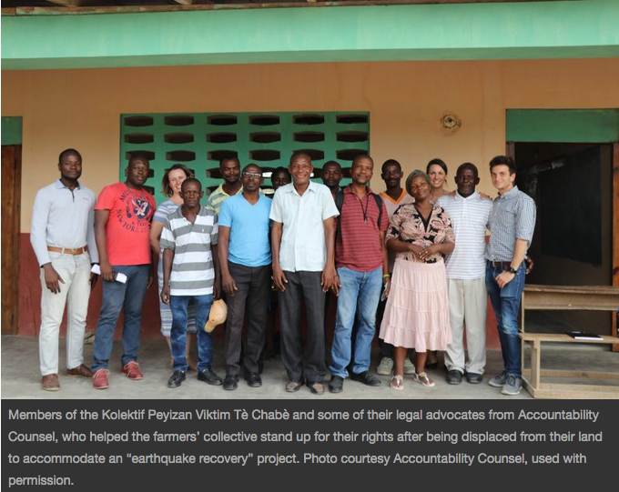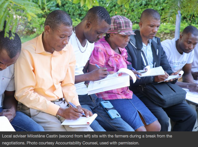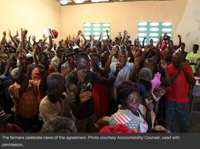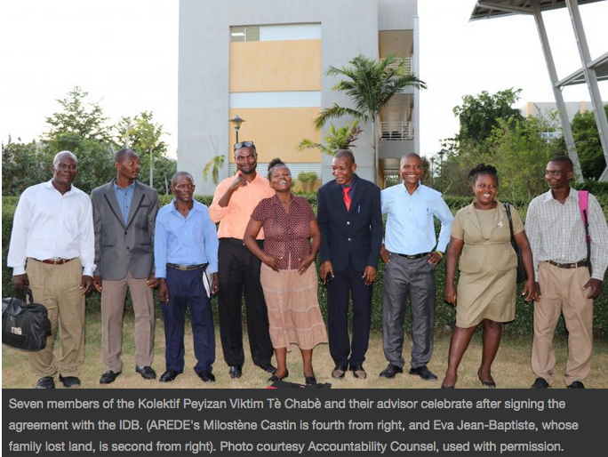 This year, instead of solely remembering the devastation, one group of Haitian farmers redefined what the anniversary of the earthquake means to them by signing a historic agreementthat will provide redress to the nearly 4,000 people in the northeast of the island who were displaced to accommodate the construction of the Inter-American Development Bank (IDB) and USAID-financed Caracol Industrial Park.