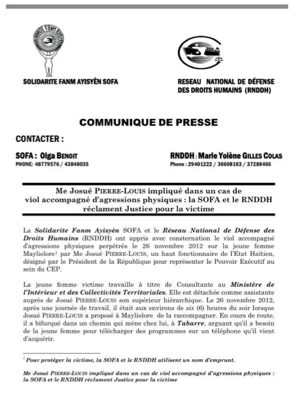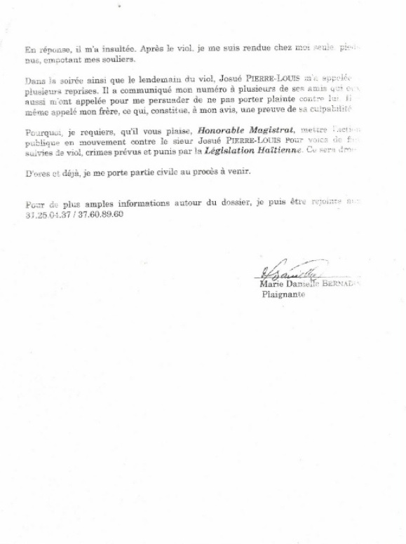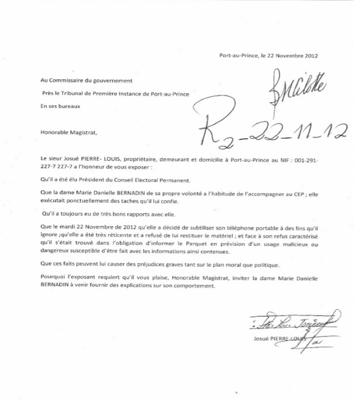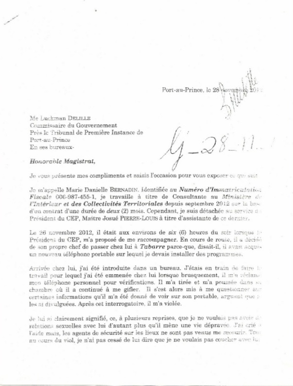 Posted in Crime/Corruption, FRENCH/CREOLE Articles, Govt Incompentece DOSSIER JOSUE PIERRE LOUIS MARIE DANIELLE BERNADIN VIOL OU COMPLOT POLITIQUE ` December 7, 2012 Author: `