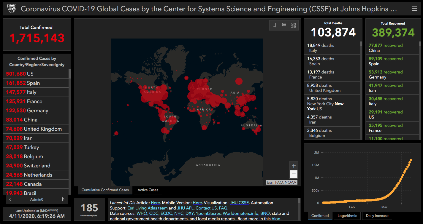 The IHME model projected that Friday would see the most U.S. deaths of any day of the pandemic — 1,983, 10 more than were recorded yesterday. In all, more than 18,000 Americans are confirmed to have died from the coronavirus.