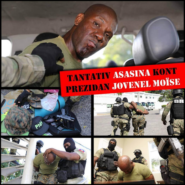 CET EX POLICIER ARRETÉ ÉTAIT AU BATIMENT DE LA NATCOM 10 MINUTES AVANT SON ARRESTATION ET SERAIT UN FORMATEUR DANS LA COMPAGNIE DE SÉCURITÉ DE YOURI LATORTUE. IL ÉTAIT SORTI DE LA NATCOM POUR RECEVOIR UNE FORTE SOMME D’ARGENT EN CASH SELON UN POLICIER DU SERVICE SECRET DU PALAIS NATIONAL.