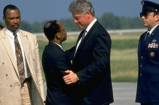 Pour l’histoire la photo, March, 1995 de gauche à droite: Chef de gang de cite Soleil, jeneral Titi, Jean Bertrand Aristide, la policière Marie Christine Jeune qui au cours de cette rencontre a refusé de serrer les mains des bandits, Fourrel Celestin, bras droit d’Aristide nommé chef de la police que le sénat avait refusé de confirmer.