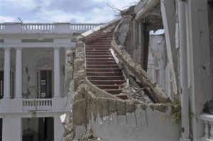 A view of part of Haiti’s collapsed National Palace in Port-au-Prince August 13, 2012. The palace, which was destroyed in the 2010 earthquake that killed an estimated 200,000 people, had its planned demolition to make way for the construction of a new one delayed. REUTERS/Swoan Parker
