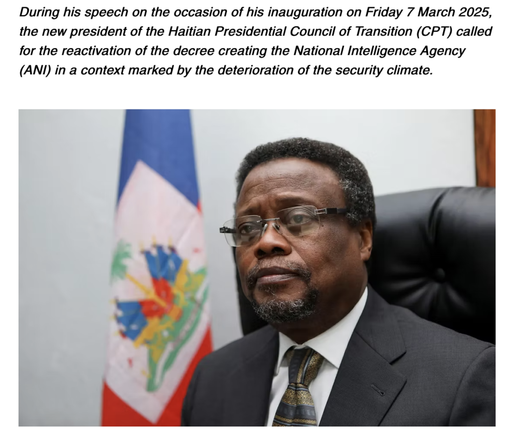 Posted in FRENCH/CREOLE Articles Fritz Alphonse Jean calls for the reactivation of the decree creating the National Intelligence Agency (ANI) in Haiti ` March 7, 2025 Author: `