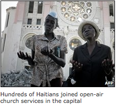 Thousands of people joined open-air church services in Port-au-Prince, Leogane – the epicentre of the earthquake – and elsewhere on Sunday.
