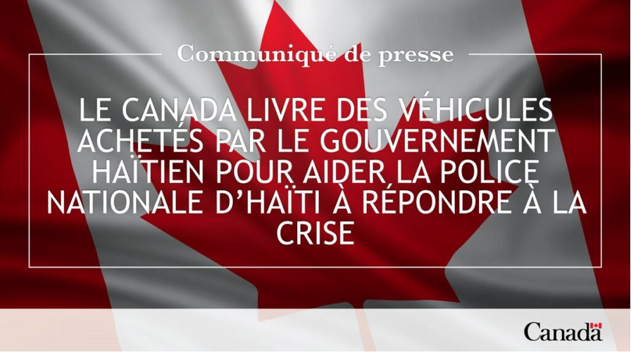 « Ces véhicules soutiendront les efforts de la Police nationale d’Haïti pour lutter contre la violence des gangs contre les citoyens haïtiens qui entrave la prestation de services essentiels et l’aide humanitaire », souligne le communiqué des Affaires Mondiales Canada.