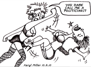 What little integrity, or self-respect she of her husband Lesly, possessed has gone down the toilet as she prostitutes herself to gain the presidency.