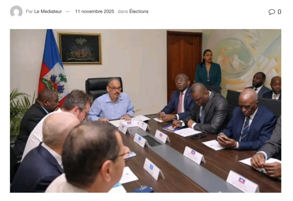 Selon un communiqué publié sur les plateformes électroniques de la Primature, le Premier ministre Alix Didier Fils-Aimé a présidé, ce mardi 11 novembre 2025, à la Primature, une rencontre avec les principaux acteurs nationaux et internationaux impliqués dans le processus électoral. Cette initiative vise à renforcer la concertation, à accélérer la coordination entre les parties prenantes et à garantir la tenue d’élections libres, inclusives et crédibles.
