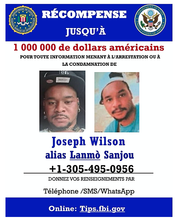 Le Département d’État des États-Unis offre une RÉCOMPENSE JUSQU’À 1 MILLION DE DOLLARS pour toute information menant à l’arrestation et/ou à la condamnation de Joseph Wilson alias Lanmò Sanjou.