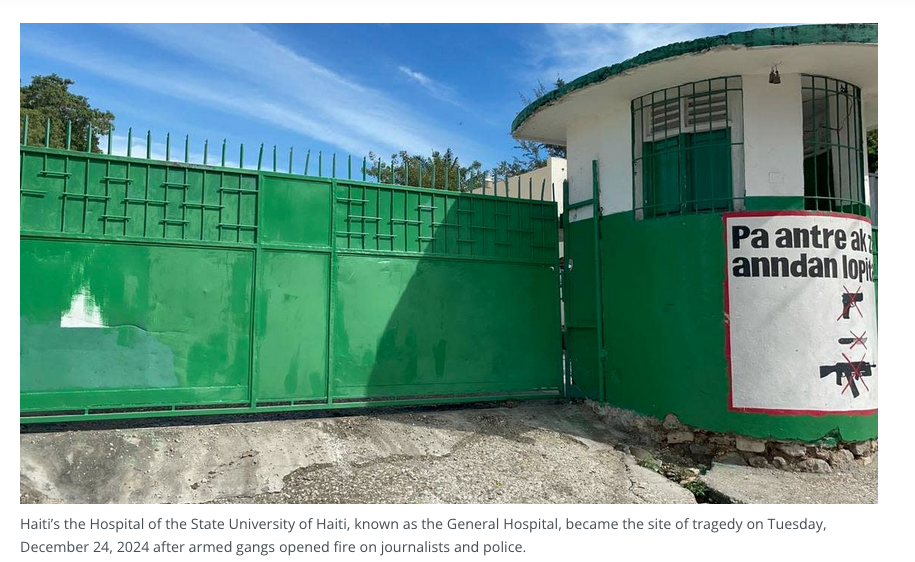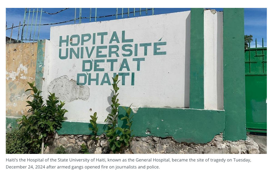 By Jacqueline Charles and Johnny Fils-Aimé Updated December 25, 2024 7:55 PM| 2 Several journalists were shot and wounded on Tuesday after armed gangs opened fire on them as they awaited a press conference to announce the reopening of the country’s largest public hospital in downtown Port-au-Prince. By Johnny Fils-Aimé