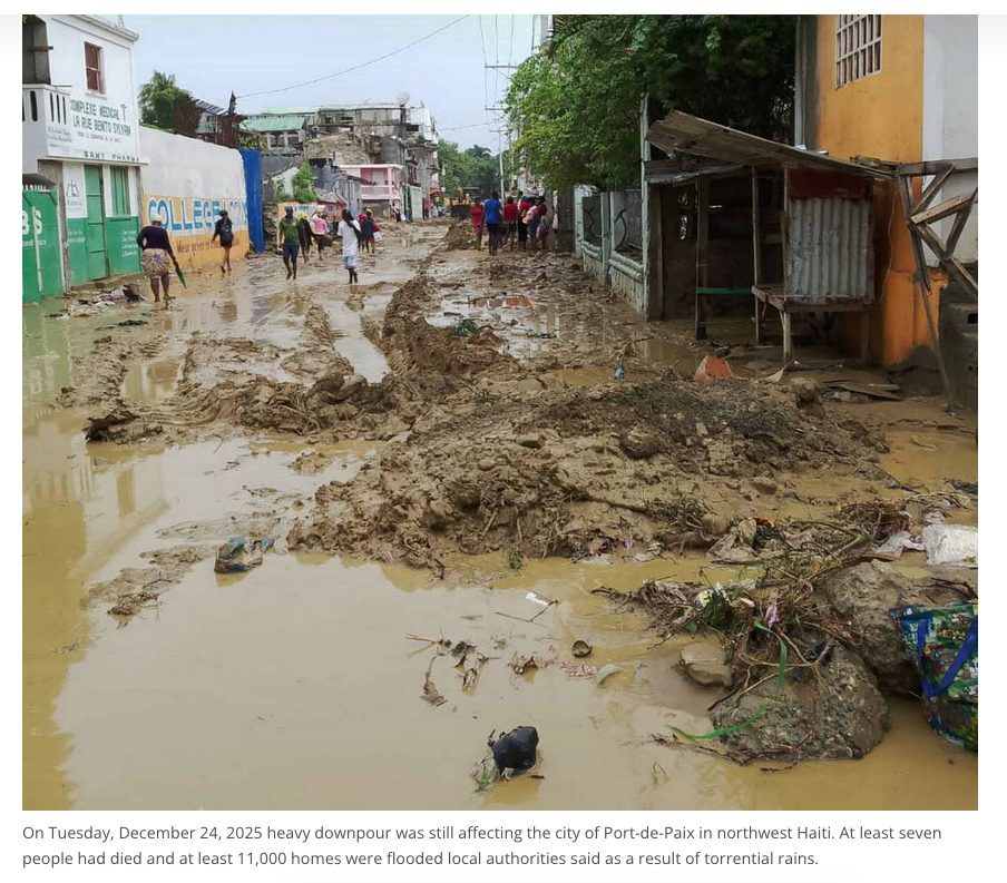 The Christmas Eve attack added to an avalanche of bad news for Haiti. On Monday, a ship transporting merchandise and vehicle to the southern region of the country capsized near Terminal Varreux in Port-au-Prince during loading. The incident was confirmed by the private port, but the extent of the casualties and damages were unclear. On Tuesday, as the gang attack was happening in Port-au-Prince, authorities in the northwest region confirmed the deaths of at least seven people from torrential rains that continued to hit the city of Port-de-Paix on Tuesday. Officials said that 10 others had been injured, while at least 100 houses had been destroyed and 500 others seriously damaged. About 11,000 houses were flooded and 20 vehicles were swept away. A bridge, constructed less than six months ago, also collapsed.