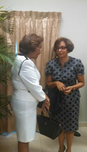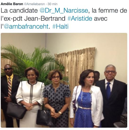 2/14/16, 3:16:20 PM: L’ex candidate à la présidence Maryse Narcisse accompagné de Mme Mildred Trouillot Aristide dans la cérémonie d’installation du président provisoire , Jocelerme au palais national cet après midi