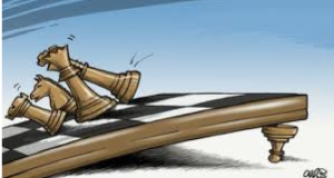 Interesting cartoon illustration where a Pawn upsets entire board and destabilizes the Royalty.