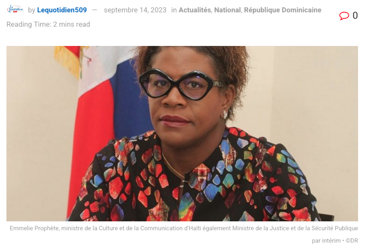 Dans une note de presse publiée ce jeudi 14 septembre à la suite des décisions du Président de la République Dominicaine Luís Abinader, le ministère de la culture et de la communication ayant à sa tête Emmelie Prophète confirme la position du gouvernement haïtien.