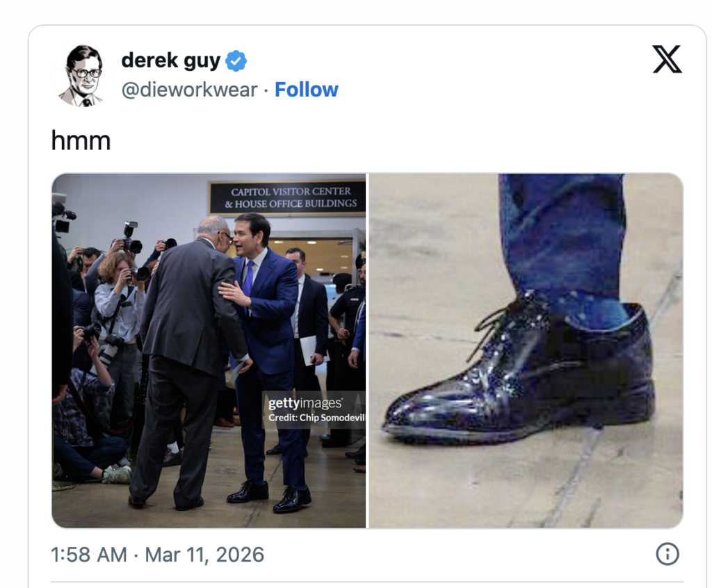 “Who buys shoes for other people? Mostly parents for their children,” reacted journalist Euan MacDonald to the photos of Rubio’s feet. “Trump buying shoes for his cabinet is a way of belittling them and humiliating them. Rubio even has such a lack of dignity and self respect before Trump that he’s willing to humiliate himself by shuffling around in shoes that are too big for him.”
