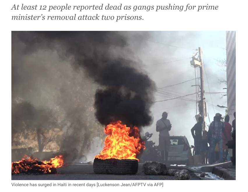 At least 12 people have been killed as thousands of inmates escaped the main prison in Port-au-Prince in deepening gang violence designed to remove Prime Minister Ariel Henry from power.
