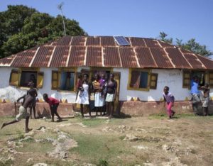 Artesia Suprice (C, yellow striped shirt) stands with her family outside their home which is one of dozens that will be expropriated by Haiti’s government to make way for an international airport, on Ile-a-Vache island, off Haiti’s south coast, March 25, 2014. For decades the mostly dirt-poor residents of the small island of Ile-a-Vache off Haiti’s south coast lived in anonymity, until last year when the government claimed the 20-square-mile former pirate lair as a “public utility,” potentially stripping the 14,000 residents of their land to develop a high-end tourist resort. Picture taken March 25, 2014. REUTERS/stringer (HAITI – Tags: TRAVEL POLITICS SOCIETY BUSINESS)