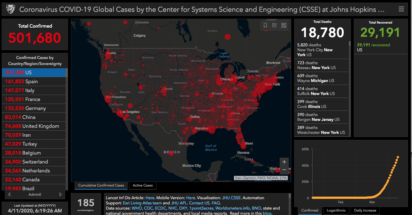 Currently, the US death toll from the virus had hit more than 18,000 and the number of infections had increased to over 500,000.