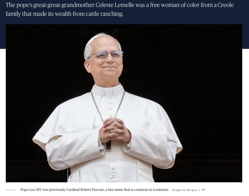As the first Catholic pope from the United States, Pope Leo XIV has an ancestry that traces back to the Creole and free people of color from Louisiana, illustrating complex and interconnected issues of race and class in American history.