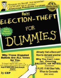 The American Embassy used ELECTION THEFT FOR DUMMIES, probably authored by Ambassador Sanderson, since she was the ultimate, unconnected DUMMY responsible for much of this farce. She loved Lambert and Preval.