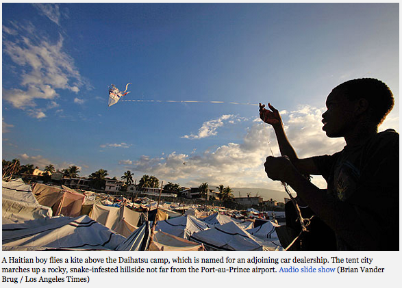 That might seem hard, two weeks after the magnitude 7.0 quake shattered the world of everyone in this camp and killed at least 150,000 of their fellow Haitians, including many close relatives and friends. Life is not easy here at the Daihatsu camp, which is named for an adjoining car dealership and marches up a rocky, snake-infested hillside not far from the Port-au-Prince airport.