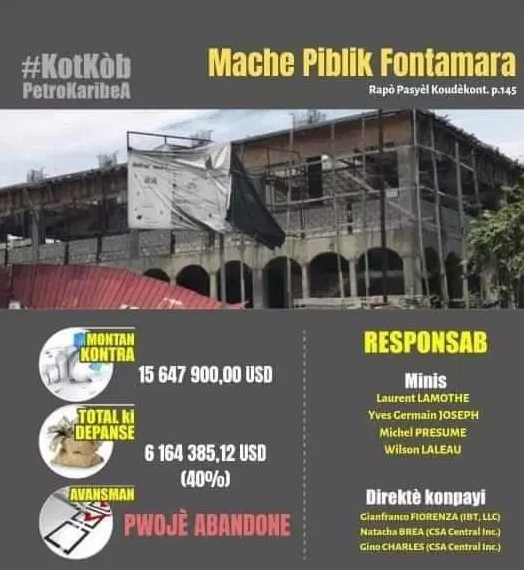 Pouki nou pa chèche konnen enfòmasyon nan men lòt minis ki vinn apre ki konnen pouki pwojè a kanpe. (Pa abandone). Car Je sais une chose : au moment de quitter ce ministère, les ouvriers travaillaient sur le chantier. Et je sais aussi que dans les trois budgets exécutés après 2016, une provision avait été décidée pour la poursuite des travaux.