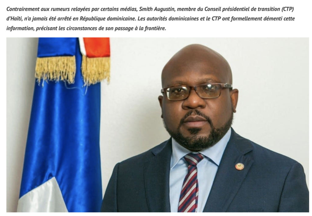 De son côté, le Conseil présidentiel de transition a également réagi. Dans une déclaration publiée mercredi, il souligne que Smith Augustin n’a jamais été arrêté ni interrogé par les autorités dominicaines. Cette mise au point vise à faire taire les rumeurs persistantes dans certains médias haïtiens et dominicains.