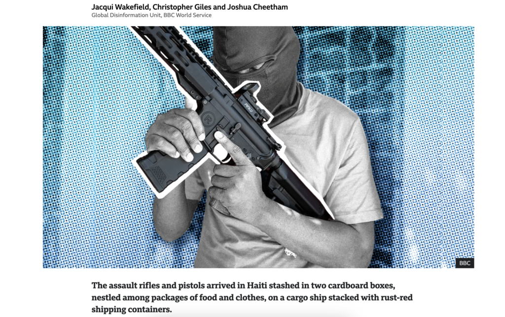 An investigation by the BBC World Service and BBC Verify traced the two boxes’ journey, showing how weapons from the US reach Haiti. It reveals a chain of lax laws, absent checks and suspected corruption used by traffickers to bypass a UN embargo.