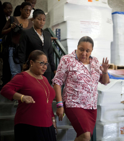 Aristide and Preval wait in the wings, ready to reenter the stage.