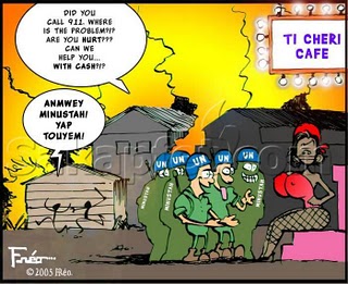 jusqu’au viol recent d’un jeune homme Haitien de 19 ans par des soldats Uruguayens de la MINUSTAH, voir la video: http://www.solutionshaiti.blogspot.com , Haiti digere mal, s’enerve et se revolte contre cette mission qui devient de plus en plus une honte pour le systeme des Nations Unies et qui ressemble a une peste pour notre pays.