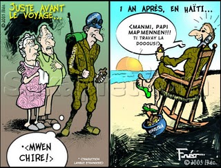 Apres le visionnement de cette video revoltante, pou gade video a klike la: http://www.solutionshaiti.blogspot.co m/ , la presence et l’avenir de la MINUSTAH en Haiti doit faire l’objet d’un debat societal pour que nous Haitiens sachions que faire de la MINUSTAH? Faut-il construire notre armee pour faciliter leur depart?Faut-il renforcer l’institution policiere? Faut-il modifier les termes de references de cette mission? Faut-il preparer et presenter a la nation un plan de reconquete de la souverainete nationale? A vous de decider comme citoyen, citoyenne de la republique. Quelque chose doit changer et ce desordre ne peut plus continuer. Pour le moment l’indignation et le degout crees par le visionnement de la video sont en train de ronger mon ame Haitien.