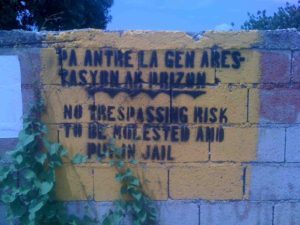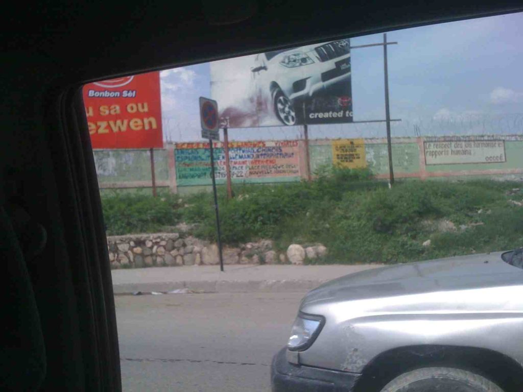 the signs are on the wall around the airport, not just the MINUSTAH part and were painted by haitians