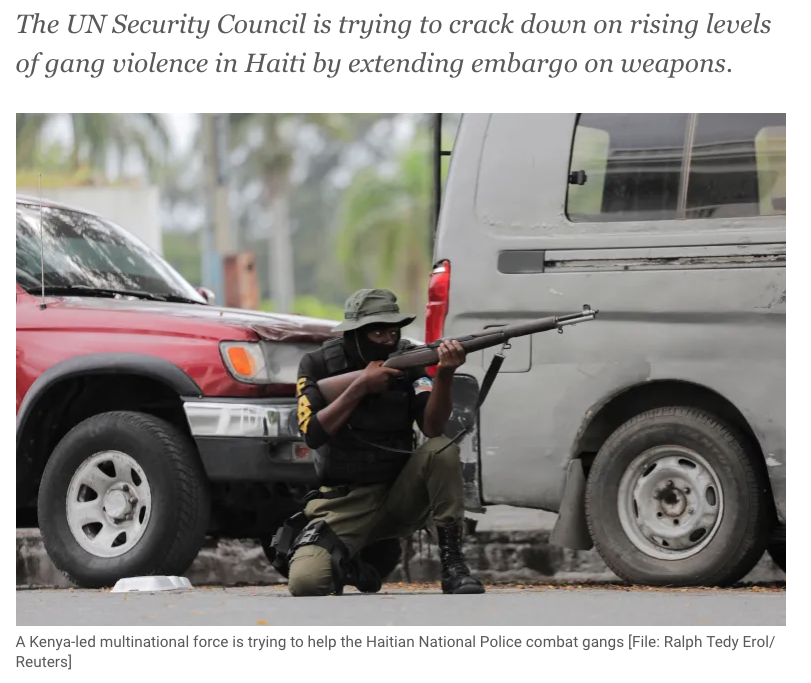 The Security Council also voted in early October to extend the mandate of the Kenya-led multinational force trying to help the Haitian National Police combat the gangs.