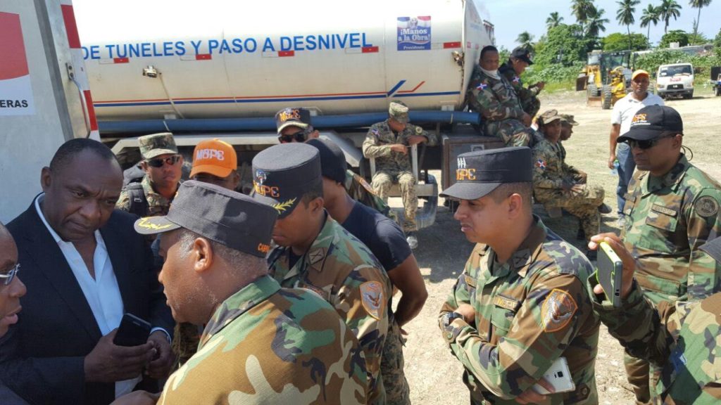 At the request of the Haitian government, the Dominican Republic recently sent a massive convoy of 500 trucks to Haiti, which contain food, water, clothes, construction materials, etc. The presence of the Dominican soldiers are to protect the convoy and to prevent the looting of the trucks, something that happened to United Nations trucks on Saturday: https://www.yahoo.com/news/looting-near-u-n-haiti-ban-promises-more-020021802.html?ref=gs