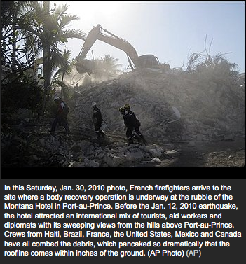 The Hotel Montana attracted an international clientele of tourists, aid workers and diplomats with its sweeping views from the hills above Port-au-Prince. None of the capital’s ruins has been more thoroughly searched. Crews from the U.S., Brazil, France, Mexico, Canada and Haiti have all combed the debris, which pancaked so dramatically that the roofline comes within inches of the ground.