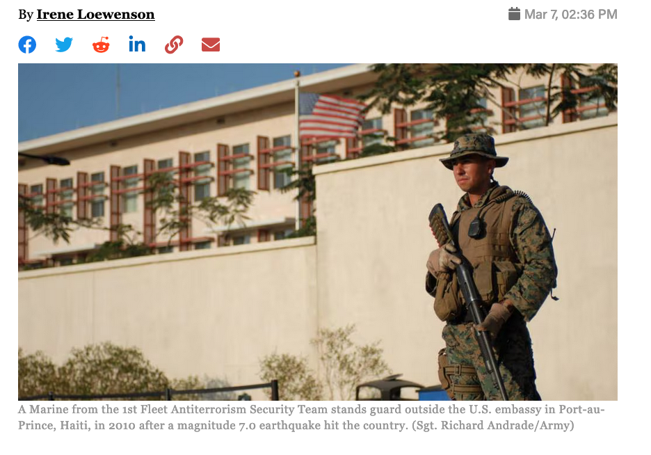 “Deploying a FAST platoon is one option at the DoD’s disposal should the DoS request assistance with security at the U.S. Embassy in Port Au Prince,” Maj. Mason Englehart, a spokesman for Marine Corps Forces South, wrote in an email to Marine Corps Times on Friday.