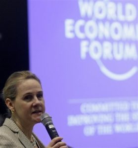 Pamela Cox, World Bank’s Vice President for Latin America and the Caribbean, talks during a meeting at the World Economic Forum on Latin America in Rio de Janeiro, Wednesday, April 15, 2009. (AP Photo/ Ricardo Moraes)